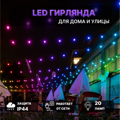 Гирлянда Twinkly Festoon Lights 20 RGB LED 10 м со стартовым шнуром