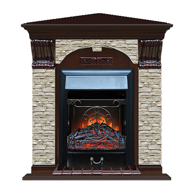 Каминокомплект арочно-угловой Glenrich портал Грот одноцветный с Дубом 46 и очагом Majestic BL 106,5х81х98 см