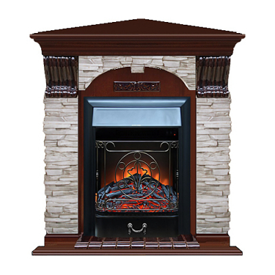 Каминокомплект арочно-угловой Glenrich портал Мисхор с красным деревом и очагом Majestic BL 106,5х81х98 см
