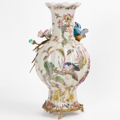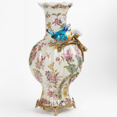 Ваза с птичкой Glasar белая 26x21x38 см